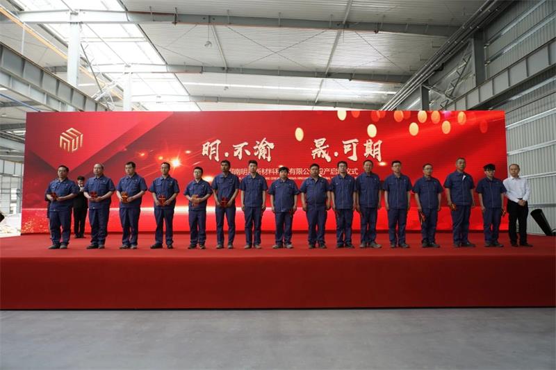 5月1日,河南明晟新材料科技有限公司投產(chǎn)啟動儀式在鄭州新廠區(qū)隆重舉行。明泰鋁業(yè)董事長馬廷義、副董事長化新民、鄭州明泰交通新材料有限公司董事長杜有東、明泰鋁業(yè)總經(jīng)理劉杰等領(lǐng)導(dǎo)出席儀式。公司各系統(tǒng)代表共700余人參加活動,大家共同見證河南明晟新材料科技有限公司正式進(jìn)入投產(chǎn)階段。